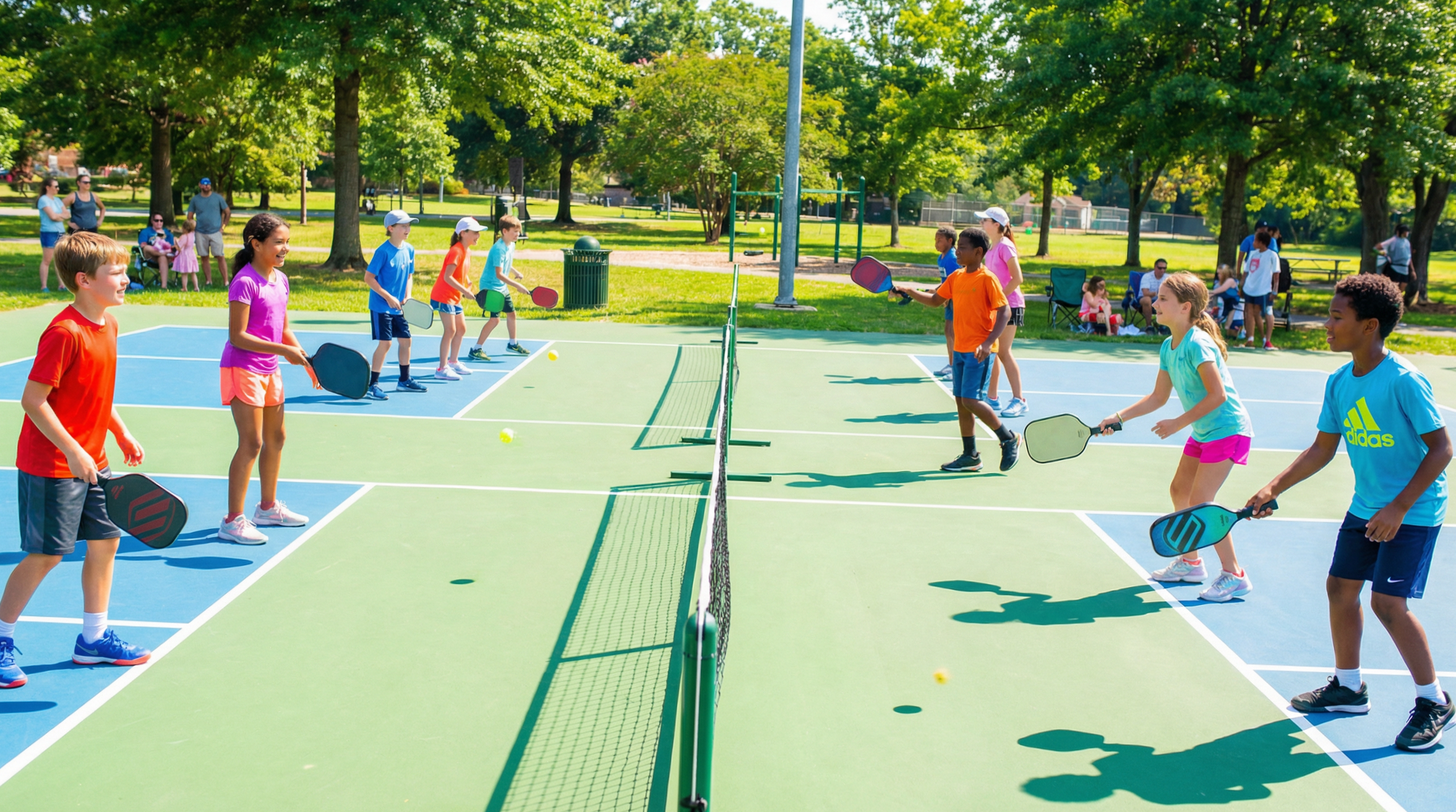shows up at public parks with pickleball courts to teach, play, and connect—for free. We bring kids, parents, and families together through movement, laughter, and community. No pressure. No memberships. Just play.